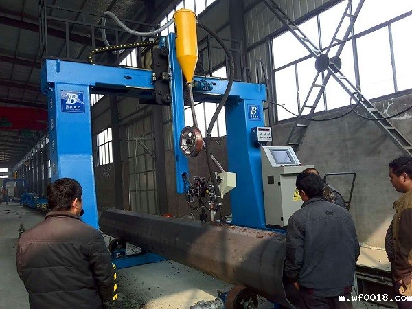 电力塔杆外纵缝焊接操作机设备由龙门架、龙门行走机构、精密磨制导轨、横竖滑道调节机构、跟踪机构、载人平台及电器控制系统等组成。采用龙门架移动,工件不动的方式。